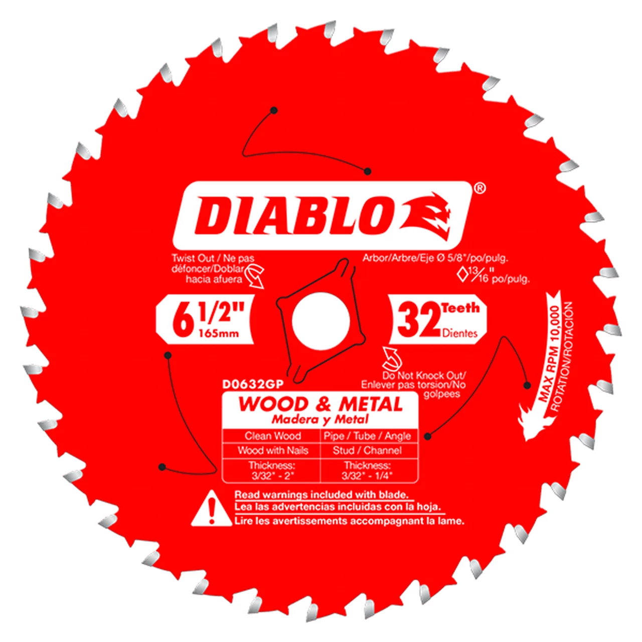 INCLUDES:Â FREUD D0632GPÂ –Â 6-1/2 in. x 32 Tooth Wood & Metal Carbide Saw Blade