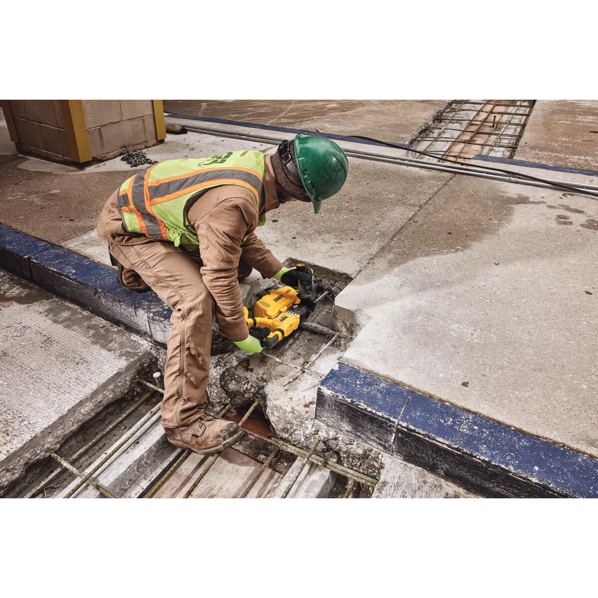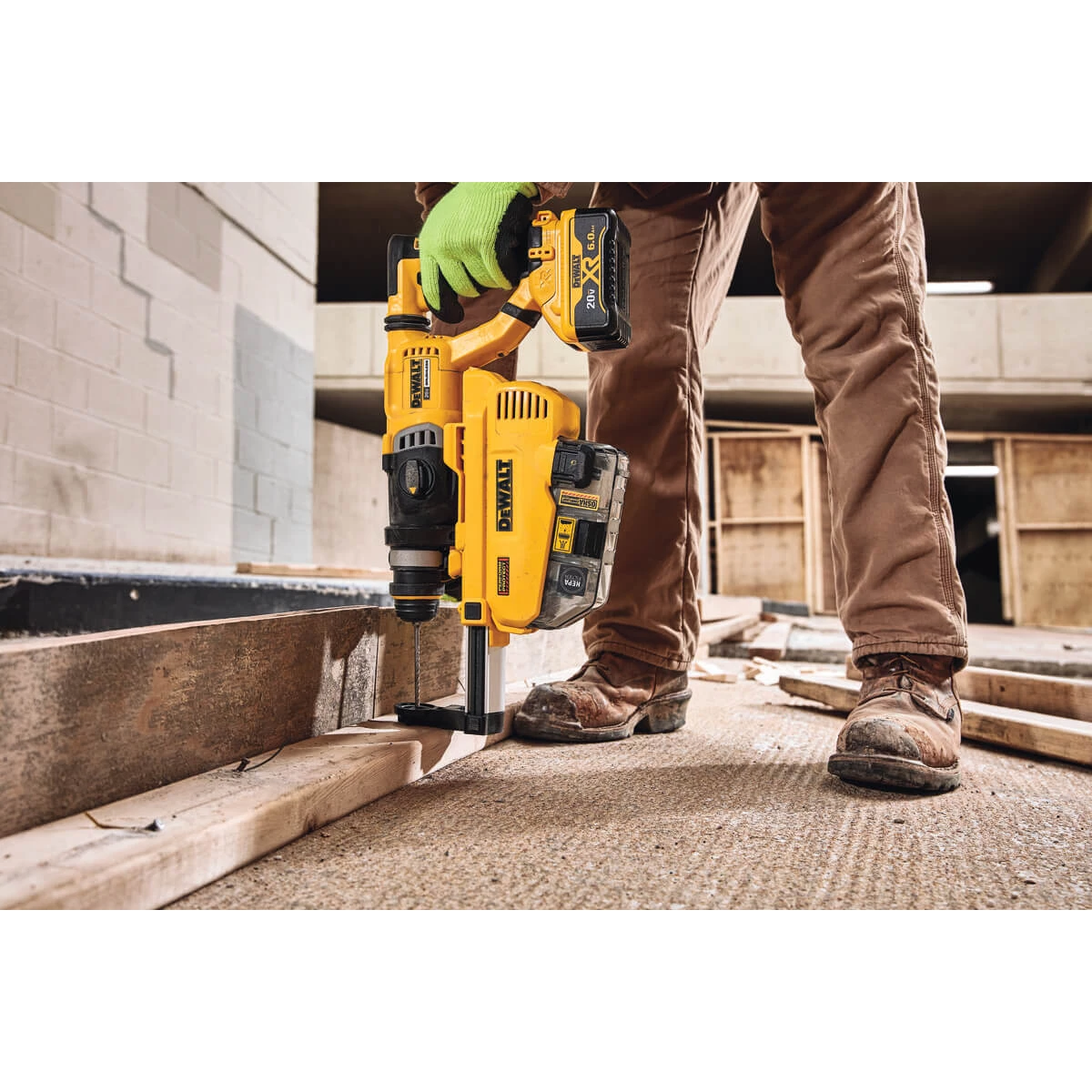 The DCH263 20V MAX* XR® Brushless 1-1/8 in. SDS Plus D-Handle Rotary Hammer is a light weight, low vibration, high-performance drill designed for the demands of today’s contractor. The durable three mode German engineered mechanism delivers 3.0 joules of impact energy that delivers fast speed of application that professionals require. This allows the DCH263 to perform quickly in chipping applications and have a wide optimal drilling range between 1/4” and 3/4 in. The SHOCKS-Active Vibration Control® system reduces vibration felt at the handles, compared to hammers without this feature. With its hard-hitting mechanism, fast drilling speed, and balanced design, this hammer is ideally suited for all day use, even with large diameter hole drilling in the hardest concrete. The DCH263 can be OSHA Table 1 Compliant when paired with our DWH205DH onboard Dust Extractor.