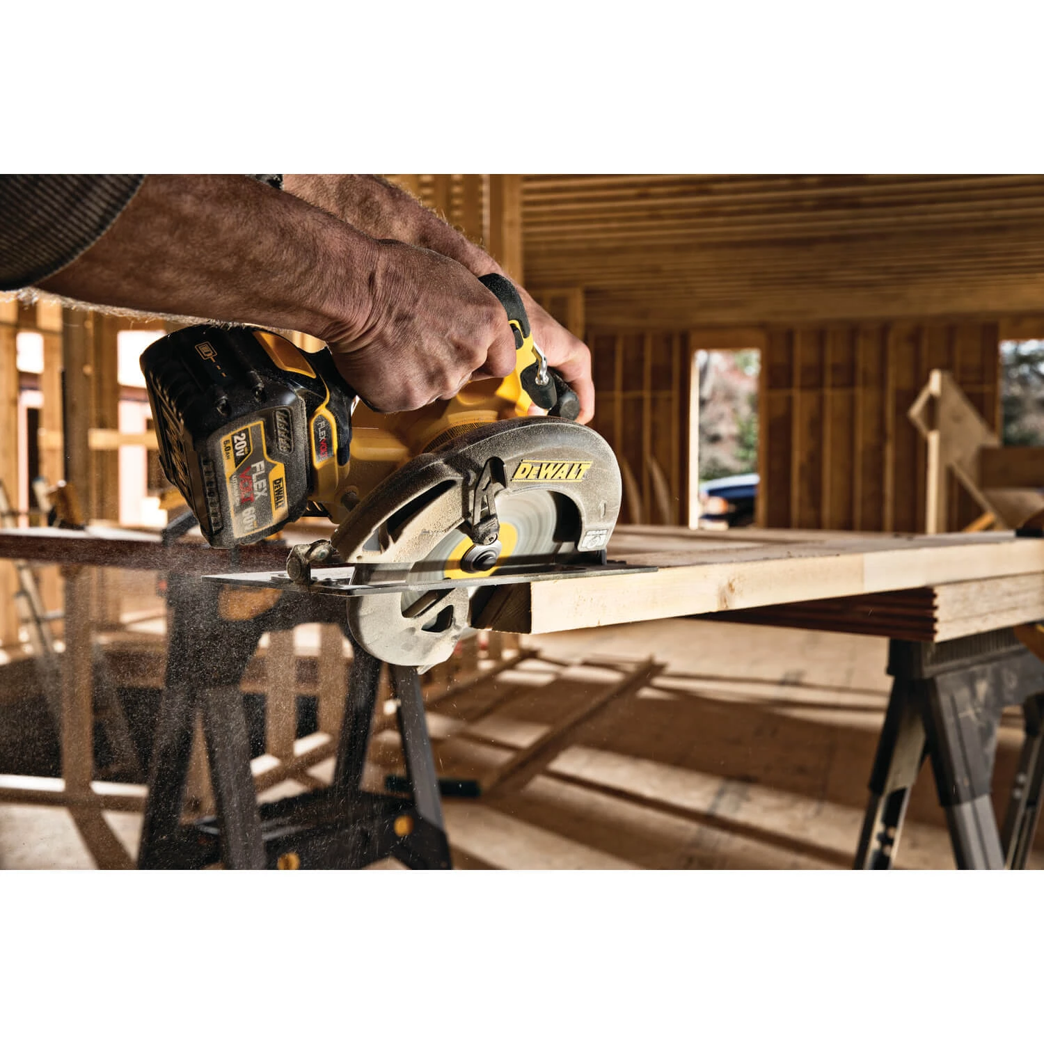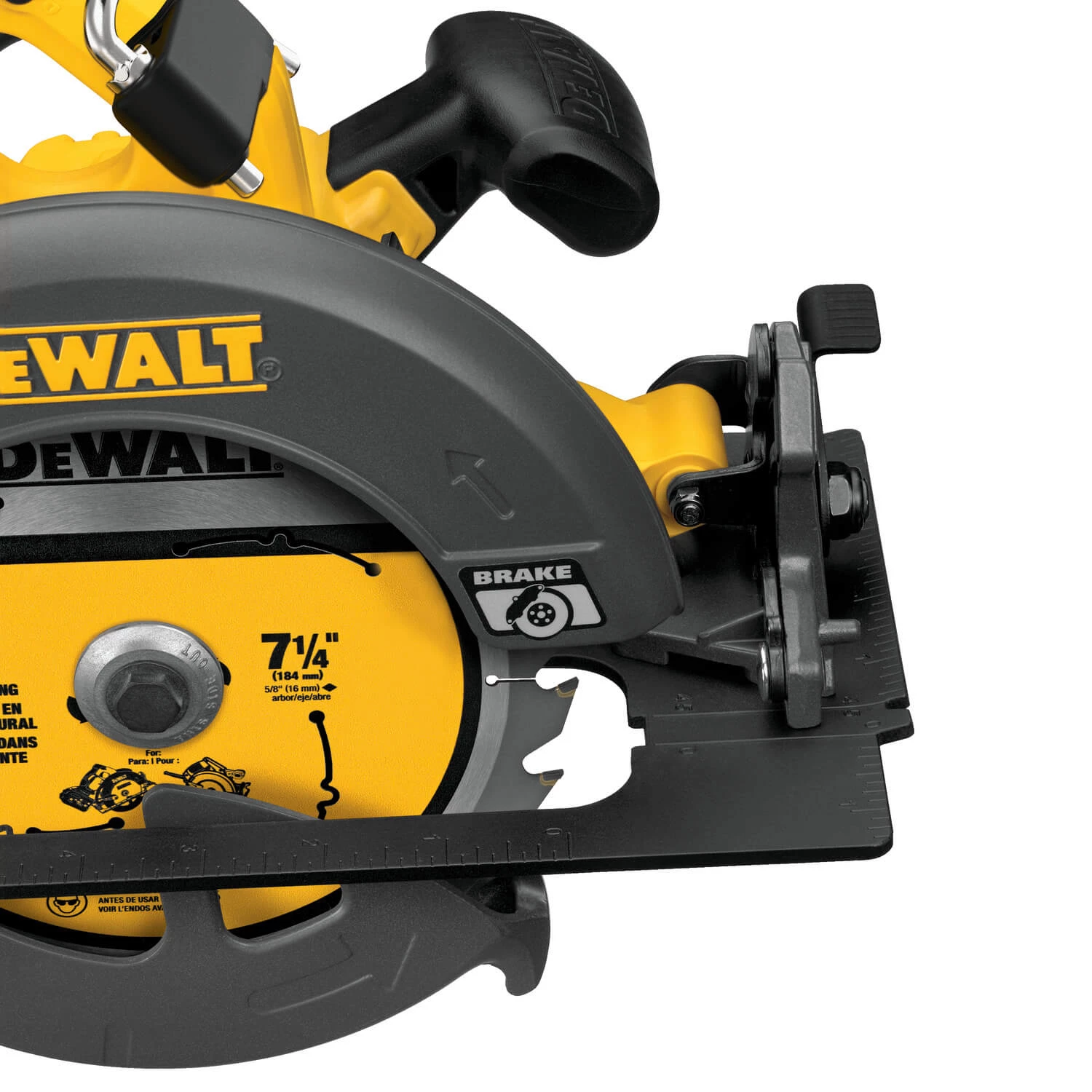 60V MAX* 7-1/4″ (184mm) Circular Saw delivers the power and depth of cut of a corded circular saw with the power and convenience of a cordless tool. The kit includes 2 60V MAX* Lithium Ion battery packs and a fast charger. INCLUDES DCS575 7-1/4″ (184mm) Circular Saw, 7-1/4″ Circular Saw Blade, 1 60V MAX* Lithium Ion Battery Packs, 1 Fast Charger, 1 Blade change wrench
