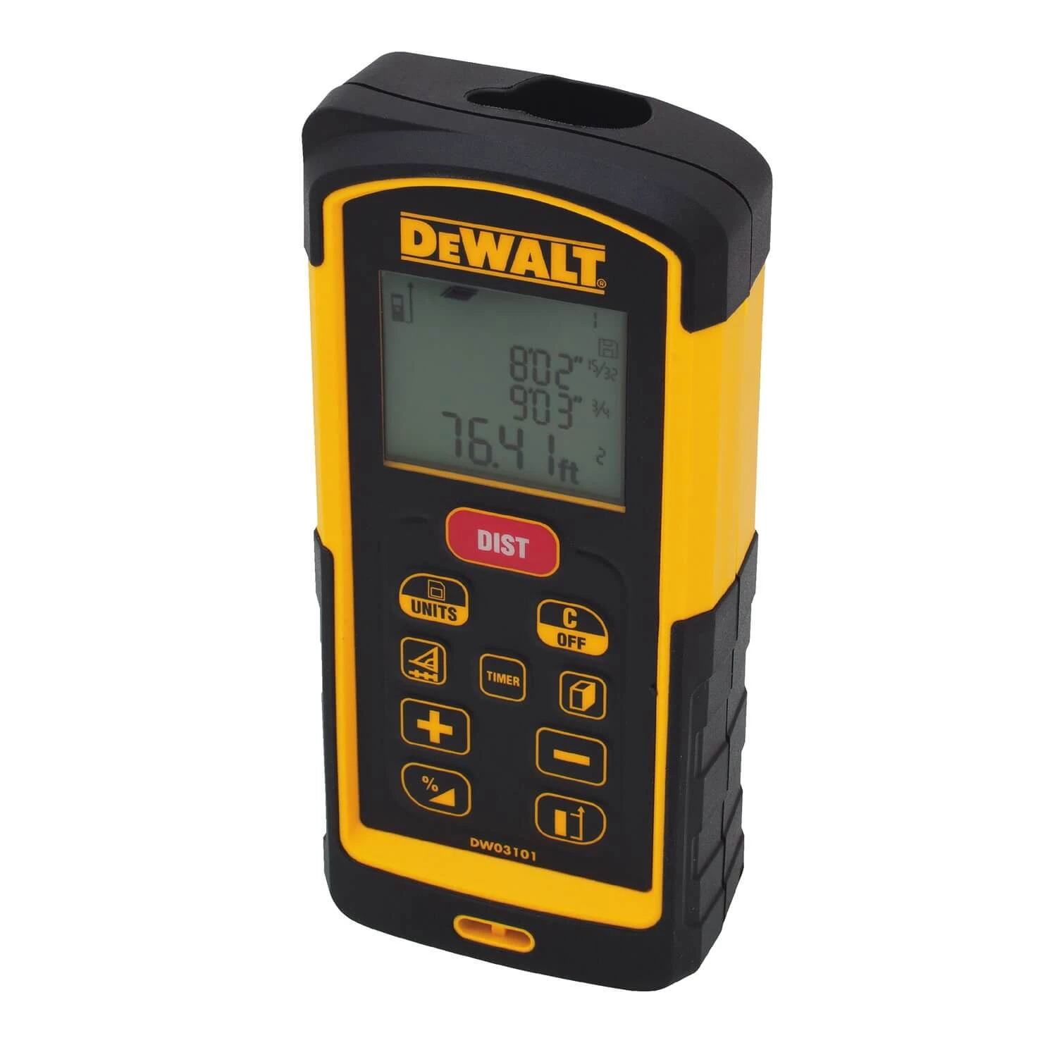 The DW03101 330′ Laser Distance Measurer automatically calculates area and volume quickly and easily. Large 3-line backlit display helps improve screen visibility in both dim and bright conditions