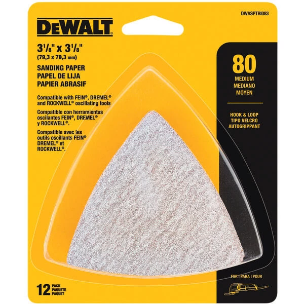 The Dewalt DWASPTRI083 Hook and Loop Triangle 80 Grit Sandpaper features…