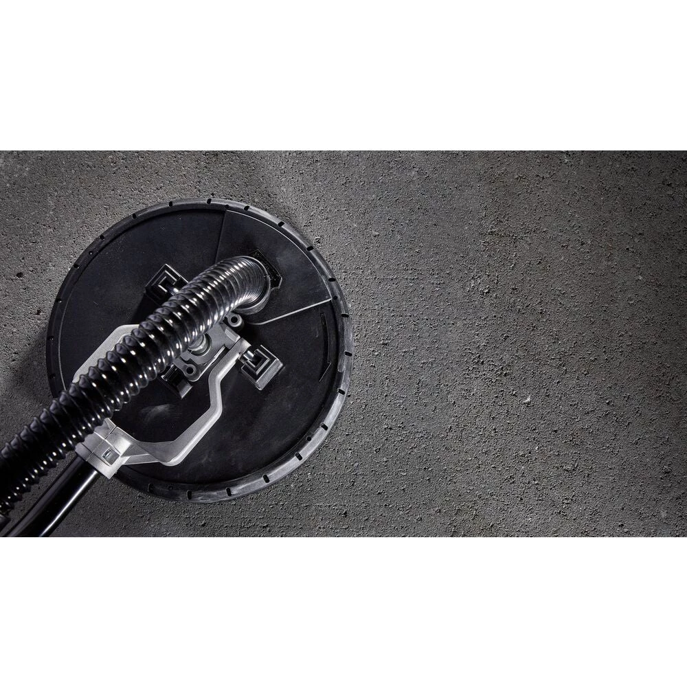 Achieve a smooth, polished finish with this 4.7 Amp Electric Drywall Sander. The variable speed dial and dual-action trigger provides control and versatility in a variety of applications. The 9 in. hook-and-loop sanding pad quickly connects to sanding paper and mesh, while the articulating head allows for better reach in workspaces. To efficiently remove dust in the workplace, this Electric Drywall Sander is equipped with an Airlock™ connection to securely attach to compatible DEWALT dust extractors.