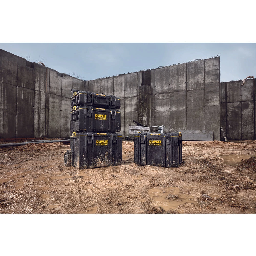 Ā The ToughSystemĀ® 2.0 Toolbox offers one-hand operation with its patented auto-connect side latches and 2-piece metal front latches. This toolbox offers 20% larger* storage capacity when used with DWST08300 and DWST08450 as part of a tower. The ToughSystemĀ® 2.0 Toolbox is built for real jobsite conditions with high-impact protection**. It is IP65 rated for dust and water resistance and has a 110 lbs. load capacity. The toolbox contains 2 large organizer cups on the inside with removable dividers for optimal organization. The ToughSystemĀ® 2.0 Toolbox is backwards compatible with any ToughSystemĀ® product.
