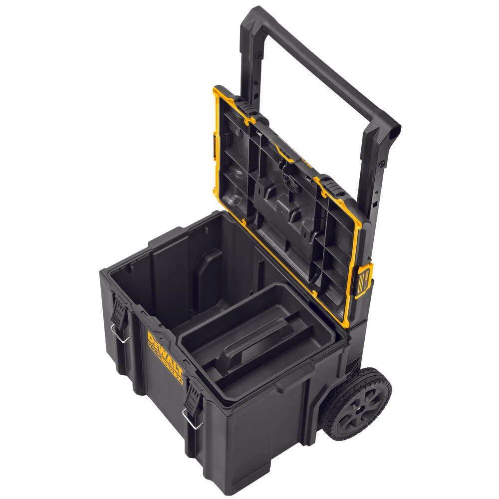 Navigate through worksite terrain with the ToughSystem® 2.0 Rolling Toolbox. With its 8 inch wheels, this toolbox is engineered and designed for rugged-terrain mobility***. Its patented auto-connect side latches allow one-handed operation. It also has 2-piece metal front latches for added durability when securing tools inside of the box. This toolbox has 20% larger* storage capacity when used with DWST08165 and DWST08300 as part of a tower. The ToughSystem® 2.0 Rolling Toolbox is built for real jobsite conditions with high-impact protection**. It is dust and water resistant with an IP65 rating and has a 250 lbs. load capacity. The toolbox has a removable inner tray for optimal organization. The ToughSystem® 2.0 Rolling Toolbox is backwards compatible with any ToughSystem® product.