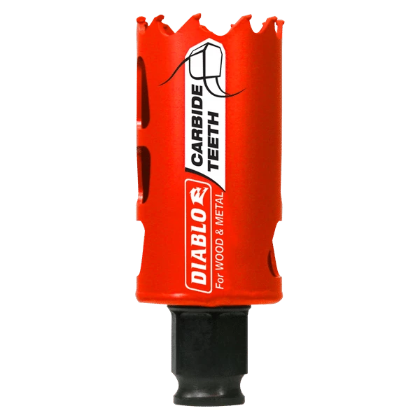 Diablo introduces the first carbide-tipped hole saws on the market to cut both wood and metal (wood, nail-embedded wood, plastic, aluminum, metal, cast iron, stainless steel and metal). Delivering 50 times longer cutting life than bi-metal, these new carbide-tipped hole saws offer faster cutting performance and increased productivity.