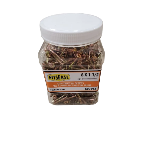 Fitsfast 584728 – CONSTRUCTION SCREWS # 8X1-1/2″, JAR 600, YELLOW