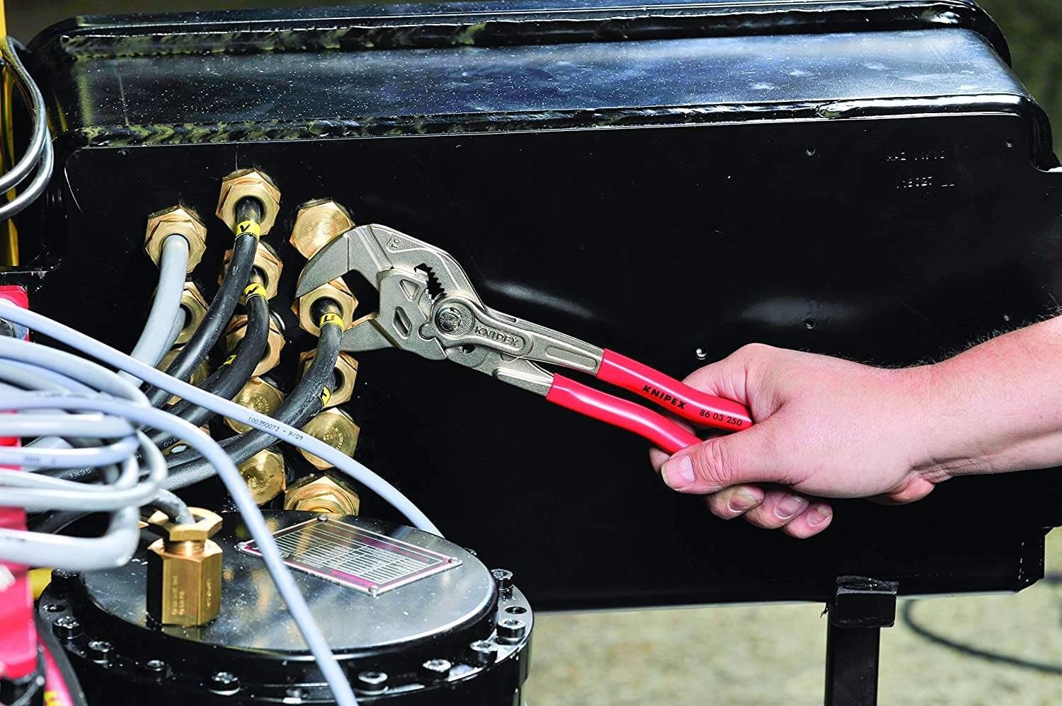 - 15° angled pliers handle provides space for counter screw connections or bolted fittings on surfaces