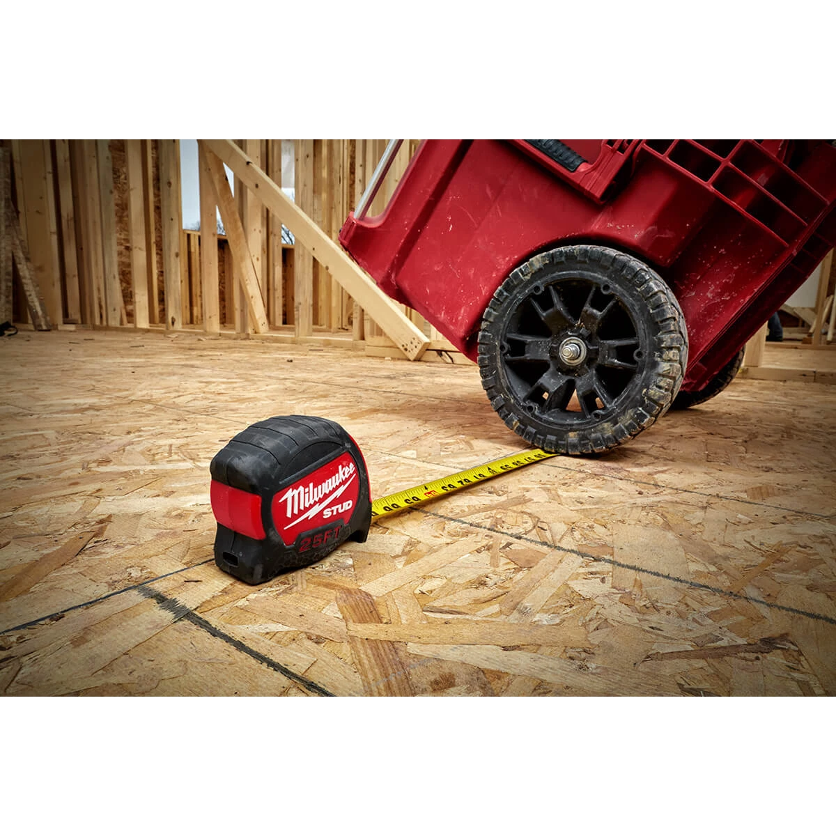 Our STUD™ Tape Measures are the industry’s most durable tape measure, equipped with innovative EXO360™ Blade Technology. EXO360™ protects the blade from ripping and wearing, delivering the longest-lasting blade on the market. The cutting-edge measuring tape blade technology, combined with a heavy-duty, fully reinforced frame, and up to 10′ tape standout makes our STUD™ Tape Measures the most durable retractable tape measures for all your jobsite needs.