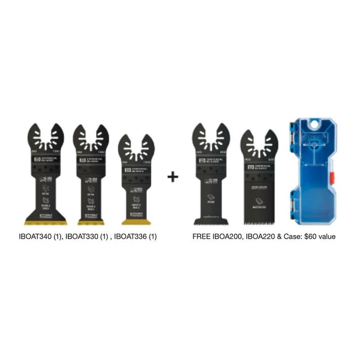 1 x IBOA200: 1-3/8″ a superb wood, PVC and drywall blade that cuts 2x faster than the previous model. The new Speartooth design delivers fast and aggressive cuts.