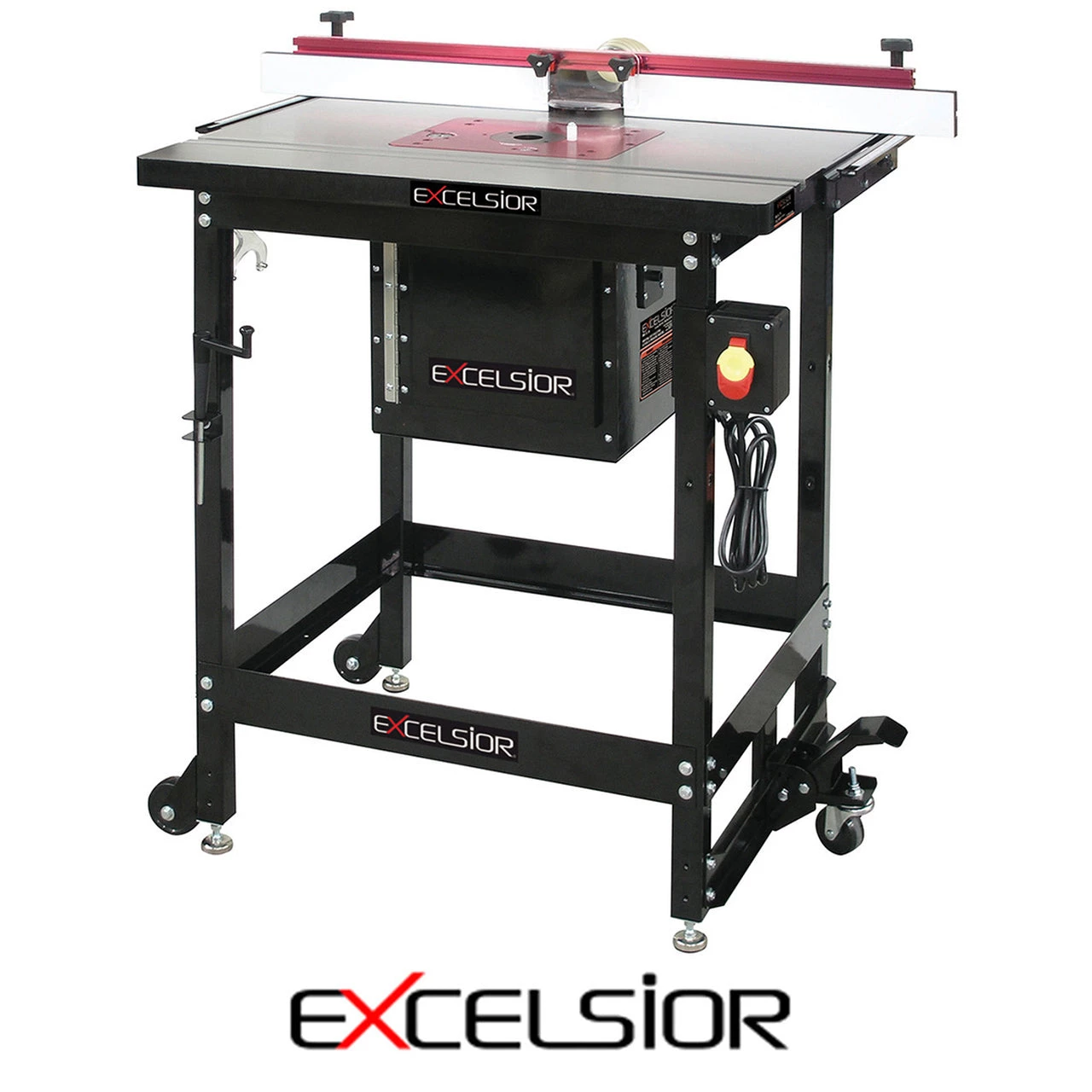 - Router table floor stand with built-in mobile base, adjustable leveling feet, On/Off safety switch with removable safety key