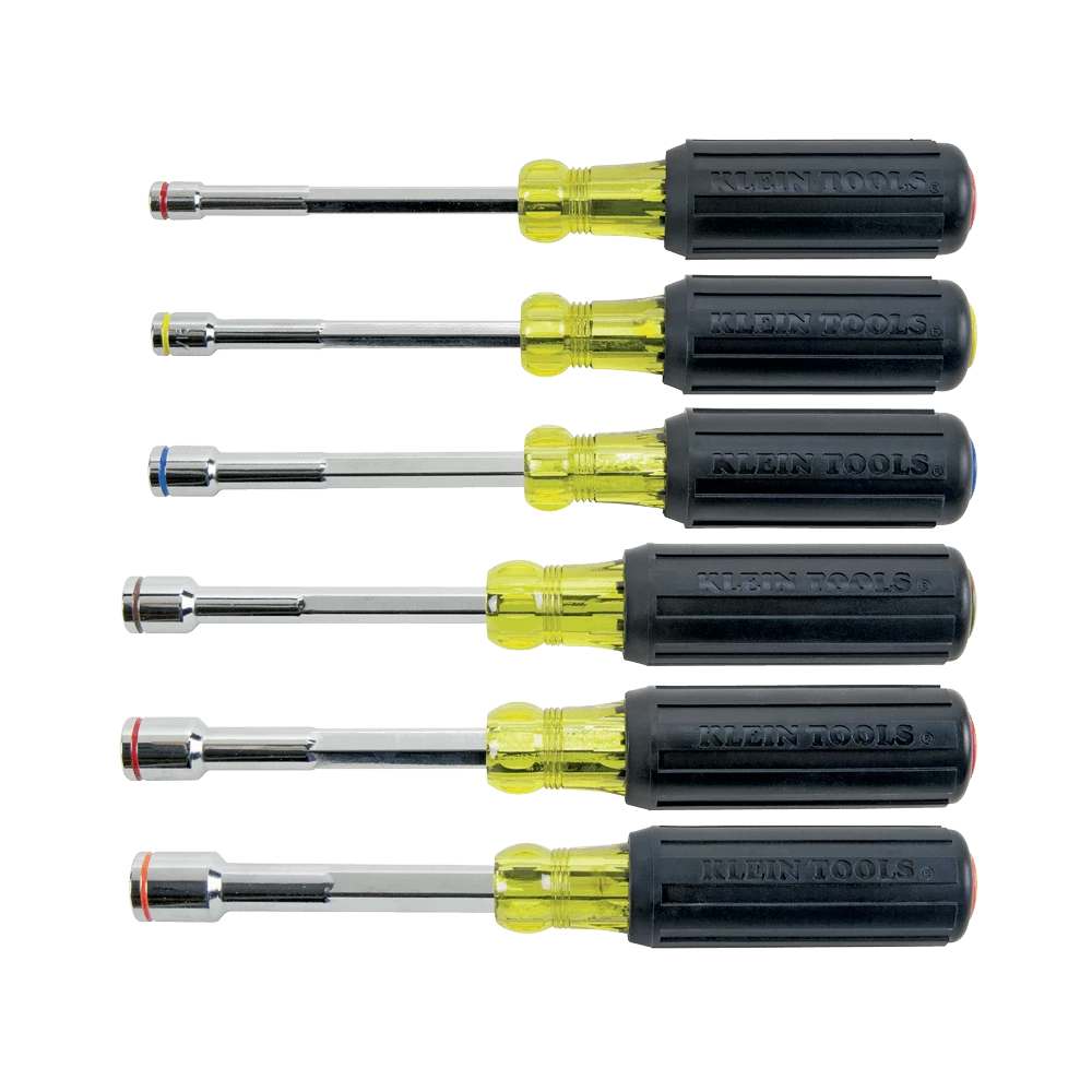 Klein’s 6-piece Heavy-Duty Nut Driver set features through-handle, completely hollow shafts to allow for nut driving on unlimited bolt lengths , and no more bottoming out. Wrench assist provides greater torque while the magnetic tips will grab any nut appropriately. The set includes common hex sizes.