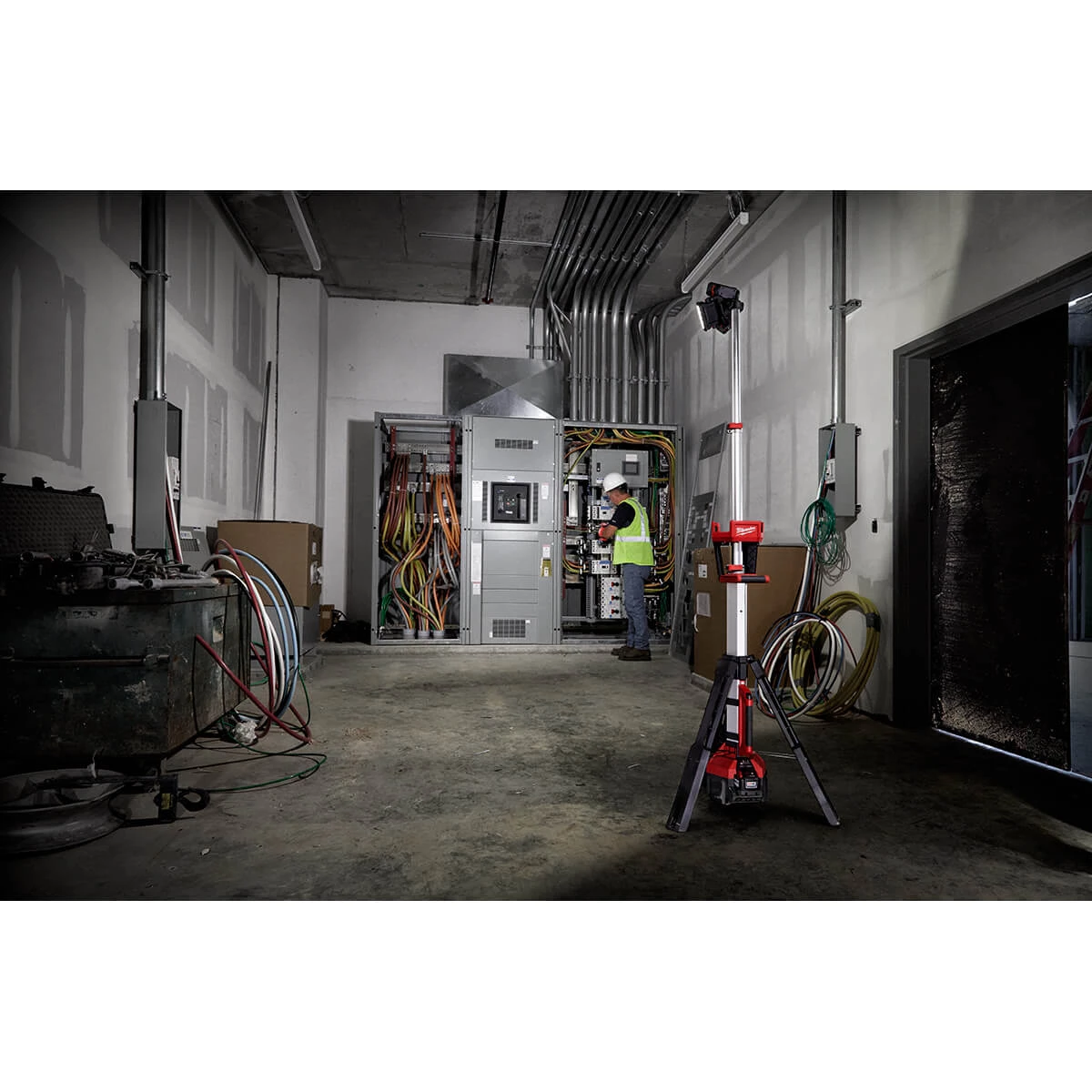 STAND UP. LIGHT UP. CHARGE UP. The M18™ ROCKET™ LED Tower Light/Charger is designed to deliver a lighting solution that ADAPTS, PERFORMS, and SURVIVES professional use unlike any other portable work light. The 2135-20 can be setup in seconds to a max height of 7’, and collapses to less than 4’ for easy transport and storage. The light head can be extended from 4-7’ to light overhead work or minimize shadows when casting light downward. The multidirectional light head gives users the ability to orient the three independently pivoting light heads to cast light in several directions. With an integrated AC plug, a user can plug in the light with a standard extension cord, and charge any M18 REDLITHIUM™ pack. Delivering 3,000 lumens, it fills up large areas with TRUEVIEW™ High Definition light. For optimized control over the output and run-time, the M18™ ROCKET™ LED Light has three settings: high provides 3,000 lumens at 2+ hours, medium provides 1,700 lumens at 4+ hours, and low provides 900 lumens at 8 hours with a M18 REDLITHIUM™ XC5.0 Battery Pack (not included).