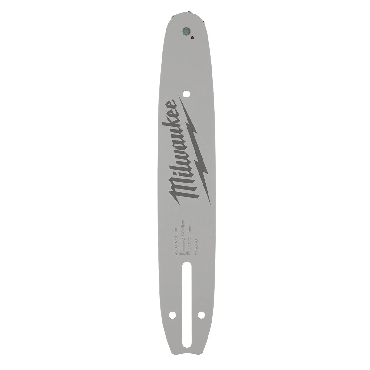 The MILWAUKEE® 10″ Pole Saw Guide Bar is to be used with the Milwaukee M18 FUEL™ 10″ Pole Saw w/ QUIK-LOK™ (2825-20PS), M18 FUEL™ QUIK-LOK™ 10″ Pole Saw Attachment (49-16-2720) and 10″ Pole Saw Chain (49-16-2723). The bar length is 10″, the pitch is 3/8″ Low Profile, and the gauge is .043″. The Narrow Kerf Design delivers maximum efficiency for longer run-time. The saw chain guide bar has a durable design and is weather-resistant for increased life.
