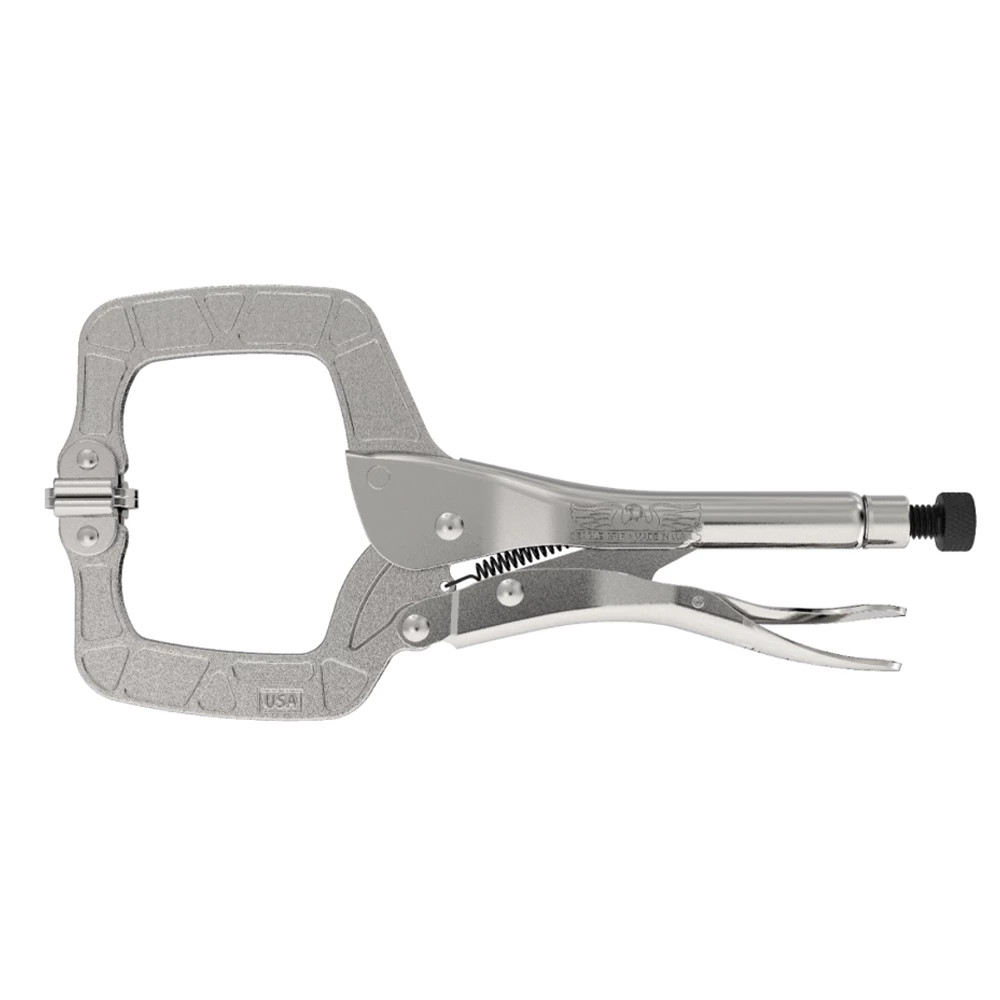 The eagle grip 11″ locking C-clamp with swivel pads combines unparalleled clamping force and durability with versatility and a long life. Wear and tear is a foreign term at eagle grip. The C-clamp’s swivel pads allow for smooth performance on a variety of tapered and fabrication jobs. The swivel pads also reduce surface damage by distributing the clamping force for maximum effectiveness. Our American-made steel delivers legendary strength to work. Perform. Outlast. You should never have to sacrifice quality or toughness when it comes to your toolbox. Eagle grip gives you both at an unmatched value.