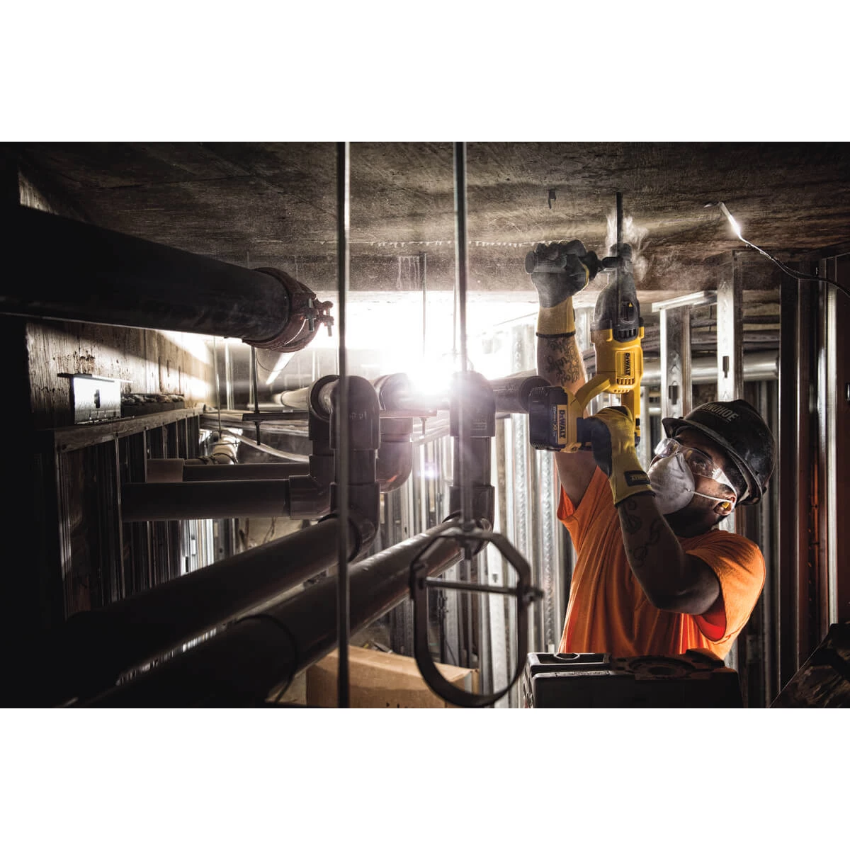 The DCH133B 20V Max XR Brushless 1″ D-Handle Rotary Hammer is a compact light weight high-performance rotary hammer that has a durable German engineered mechanism that delivers 2.6 joules of impact energy. At the heart of this tool is the DEWALT brushless motor and durable rotary hammer mechanism. With its better than corded speed of application, compact size, light weight and balanced design, this hammer can replace your corded tool. The mechanical clutch enhances user control in a bind up situation and can help minimize sudden torque reaction. The DCH133 is dust extraction ready for the D25301D.