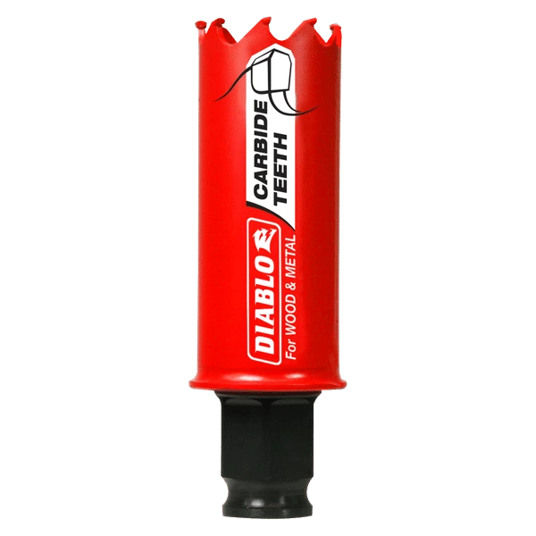Diablo introduces the first carbide-tipped hole saws on the market to cut both wood and metal (wood, nail-embedded wood, plastic, aluminum, metal, cast iron, stainless steel and metal). Delivering 50 times longer cutting life than bi-metal, these new carbide-tipped hole saws offer faster cutting performance and increased productivity.