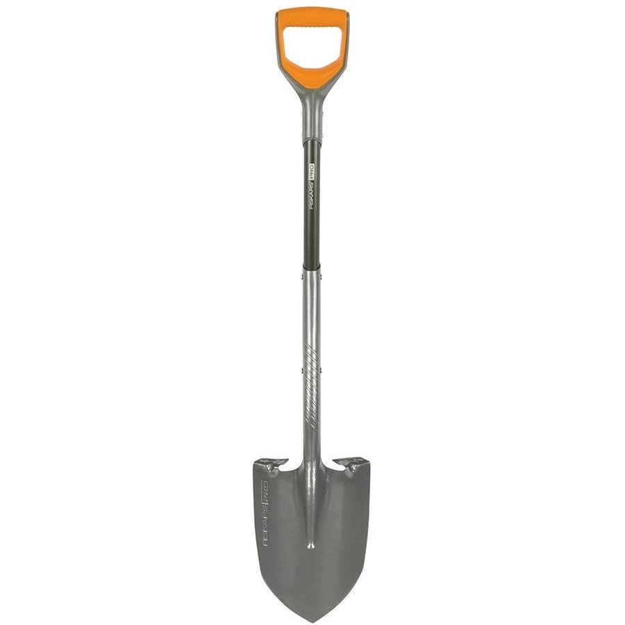 - The Fiskars 397960-1001 PRO Digging Shovel features an extruded aluminum handle and double-bolted connections for ultimate strength and durability