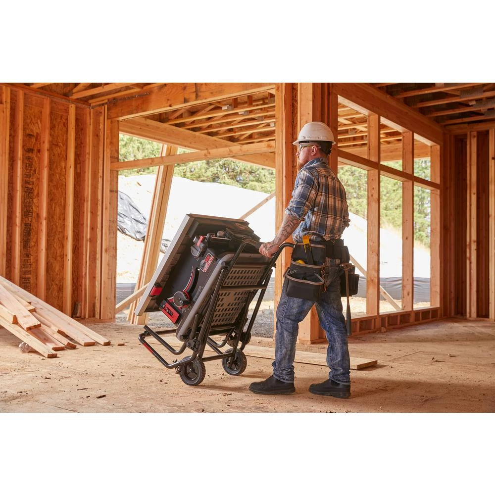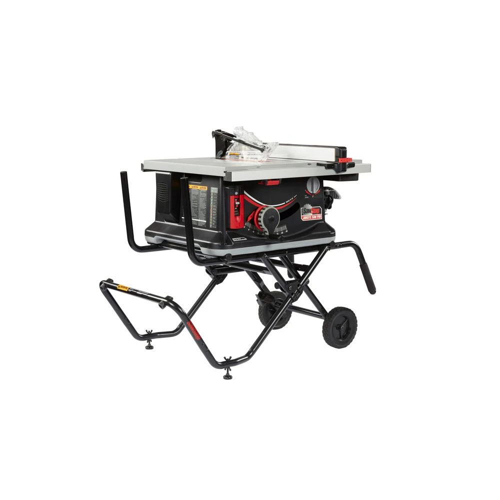 The 1.5 HP, 15 Amp SawStop Jobsite Saw Pro is the standard in jobsite safety. Equipped with SawStop’s patented blade braking technology, this saw delivers unmatched protection coupled with groundbreaking functionality. With the 1 Turn Elevation and Quick tilt features, users can raise and lower the blade with just 1 turn of the handwheel and quickly tilt the blade for bevel cuts saving valuable time. The solid T-Style Fence with Ergolock allows the fence to slide smoothly along the rails and locks in tight for accurate cuts. Simple, intuitive action extends the Mobile Cart for use and collapse the cart for transport and storage. This saw includes 1 standard brake cartridge, 1 40-tooth blade, 1 zero clearance insert, a collapsible rolling cart, active dust collection blade guard and riving knife. Experience the precision, quality and safety of a SawStop saw wherever your jobs will take you.