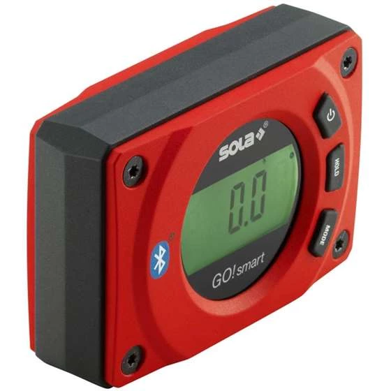 The digital GO! smart from SOLA combines the functions of a spirit level, an inclinometer and a protractor in a single device. Equipped with a backlit display and a magnetic base with a V-groove, this compact all-rounder has versatile applications. The GO! smart’s Bluetooth interface means that it can be used together with the free SOLA Measures app, giving you access to useful additional functions.