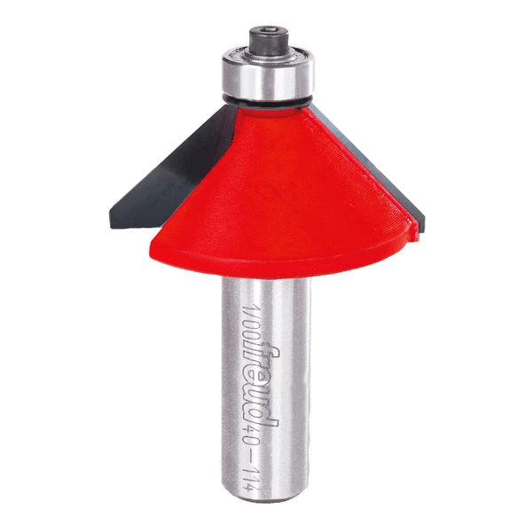The chamfer profile seems simple, but it is a great solution for lots of multiple-sided projects, joinery, and easing edges. Creates a uniform chamfer on the edge of any work piece to add character, while retaining crisp geometric lines. #40-094 makes 16-sided pieces and #40-098 makes 12-sided pieces. Routs hardwood, softwood, plywood and composites; use in hand-held or table-mounted portable routers.
